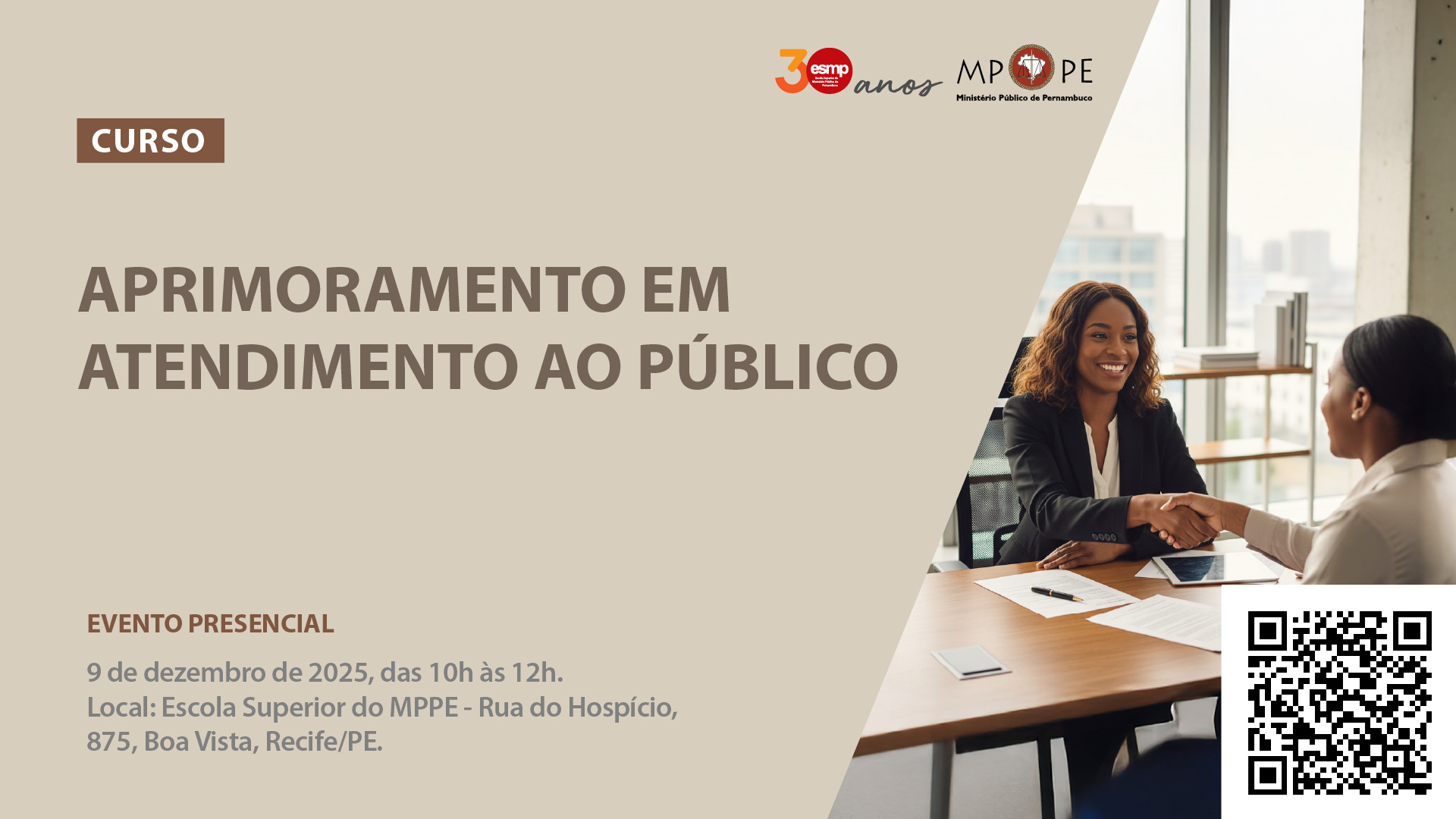 Inscrições abertas. Público: membros, servidores e assessores do MPPE.