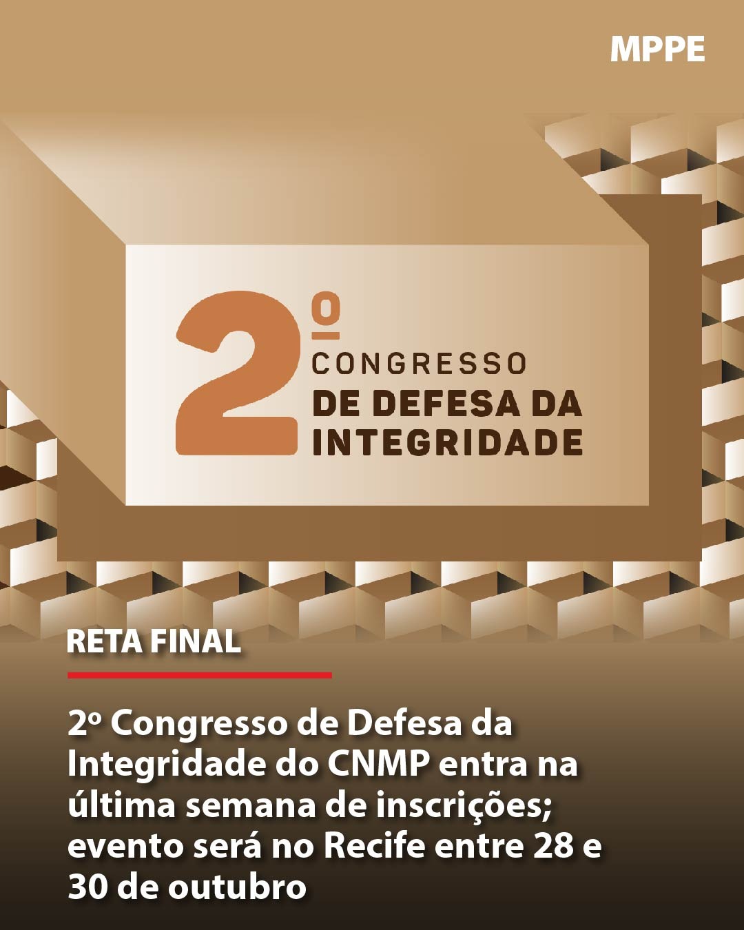 Inscrições abertas. Público: integrantes do MPPE.