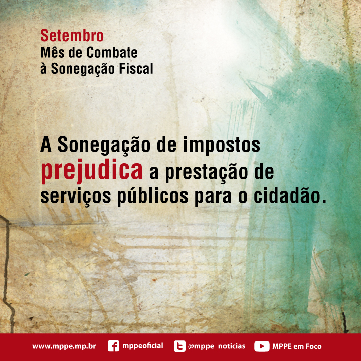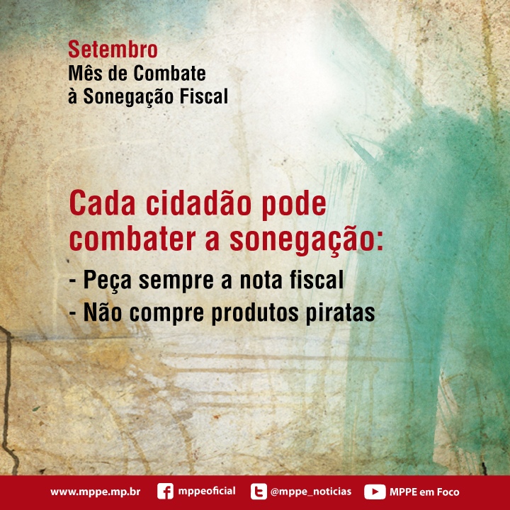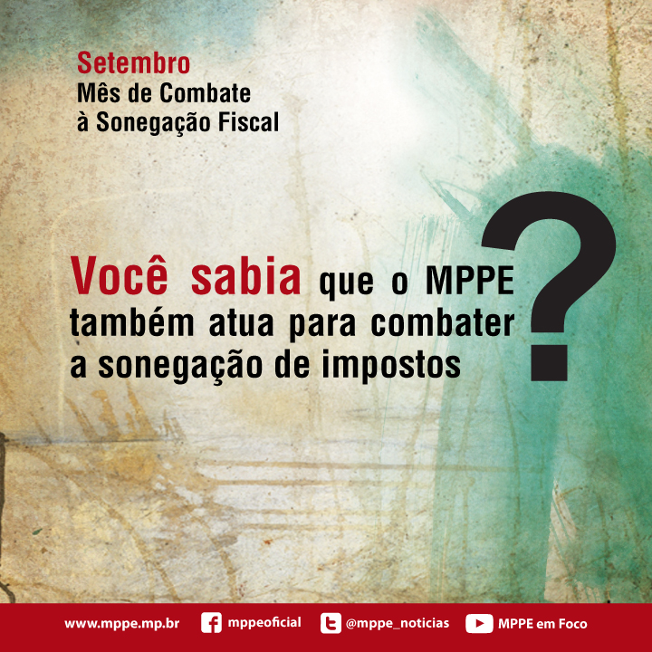 O Ministério Público de Pernambuco é a instituição que fiscaliza se o poder público, as empresas e os cidadãos estão cumprindo as leis. O MPPE atua em diversas áreas e também investiga e denuncia à Justiça fraudes fiscais, como a sonegação de impostos. Vários parceiros estão junto com o MPPE nessa luta, inclusive nesta ação de educação fiscal para os estudantes do Estado de Pernambuco. Cada jovem, consciente dos seus direitos, pode mudar essa situação. Combater a sonegação fiscal, cumprir com seus deveres e denunciar ao Ministério Público de Pernambuco casos de sonegação ou de mau uso do dinheiro público são deveres dos jovens que estão em dia com sua cidadania