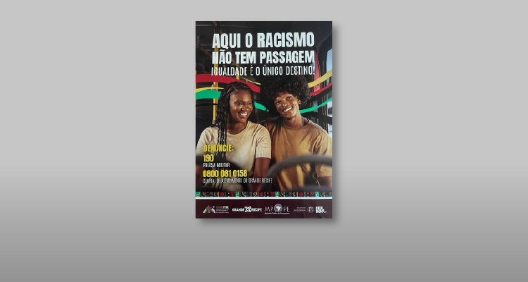 04/11/2025 - Nesta quarta-feira (5), o Grande Recife Consórcio de Transportes(CTM), em parceria com o Ministério Público de Pernambuco (MPPE) e outras instituições públicas, lançará a campanha "Aqui o racismo não tem passagem. Igualdade é o único destino". A campanha será lançada às 6h da manhã, no interior do Terminal Integrado de Xambá (Avenida Presidente Kennedy), no bairro de São Benedito, em Olinda.